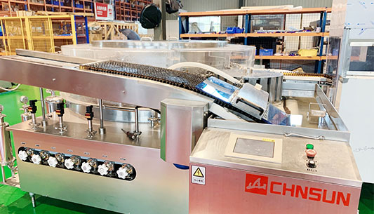 采用超聲波清洗及水氣交替沖洗、熱風循環式高溫滅菌、多頭灌裝與封口等技術。整線聯動自動控制。操作簡單方便,實現了機電一體化。