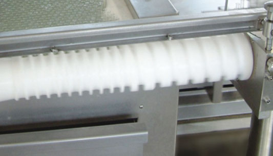 瓶子由網帶自動進瓶,經噴淋裝置將瓶子注滿循環水后,再進入清洗槽中。水槽中瓶子經過約1分鐘的超聲波清洗后,再由進瓶絞龍將瓶子送至提升滑塊處,提升滑塊再將瓶子從粗洗水箱中提升并送至大轉鼓的機械手上。帶有夾子的機械手伸出將瓶子夾住并翻轉180度,瓶子成倒立狀態進入下面的沖洗工位: