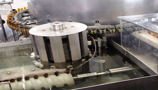 采用超聲波清洗及水氣交替沖洗、遠紅外高溫滅菌、多頭灌裝與封口等技術。整線聯(lián)動自動控制。操作簡單方便,實現(xiàn)了機電一體化。